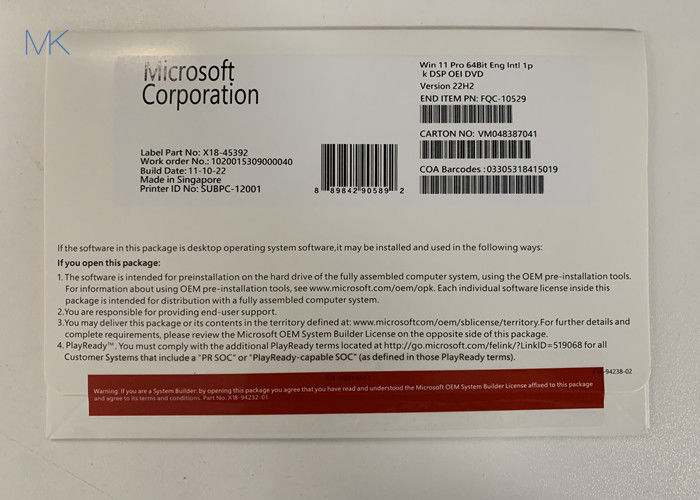 마이크로소프트 OEM 시스템 구축가 Windоws 11 전문적 OEM 64는 오이 DVD 영어 22H2를 물었습니다